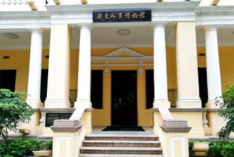 廣東外事博物館原為民國時期法國駐廣州領事館,建于1890年,是沙面建筑群中的A類文物建筑,全國重點文物保護單位。除了收藏了改革開放以來廣東的外事禮品以及重要外事活動的圖片外,還特意利用旋轉樓梯的空間展示了十多幅百年前的沙面老照片,其中有一幅照片記錄下百年前洋務翻譯拖著長辮身穿大褂的身影,這幅懸掛在二樓大廳的老照片,不但完整地反映了當年沙面西橋景色,而且可以看到當時行走在英法領事區(qū)的洋務翻譯依然保留清裝打扮。